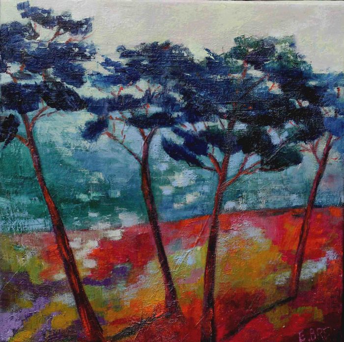 L'exposition d'Emmanuelle Brett est une invitation à entrer dans un monde imaginaire, un rêve éveillé, loin des réalités parfois moroses du monde qui nous entoure. Un cheminement dans des paysages aux harmonies colorées, où les villes se parent de formes tout en rondeurs et les champs de couleurs chatoyantes. Un monde onirique et féérique qui réinvente une réalité rêvée au gré de compositions joyeuses et rythmées. Ce sens de la composition est une des marques de la peinture d'Emmanuelle Brett. Comme dans une partition musicale, elle pense dominantes, rythmes, silences, vides et pleins, avant d'apposer ces lignes et courbures qui donnent mouvement et vie à ses paysages.La couleur composée, d'infinies nuances, vient enrichir le sujet, lui donner ses contrastes et parfaire l'harmonie du tableau.