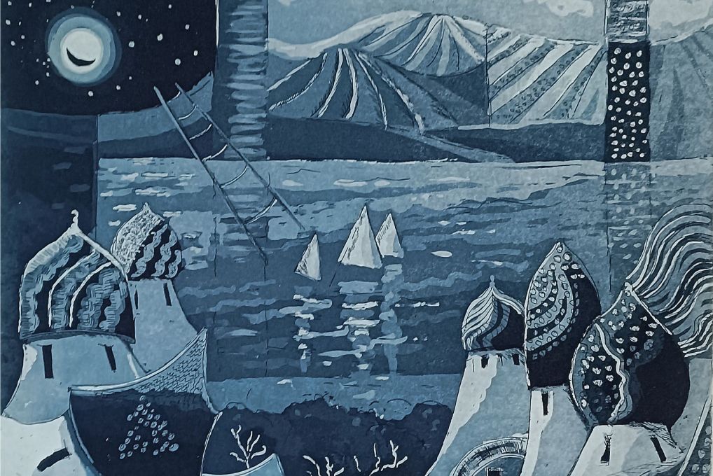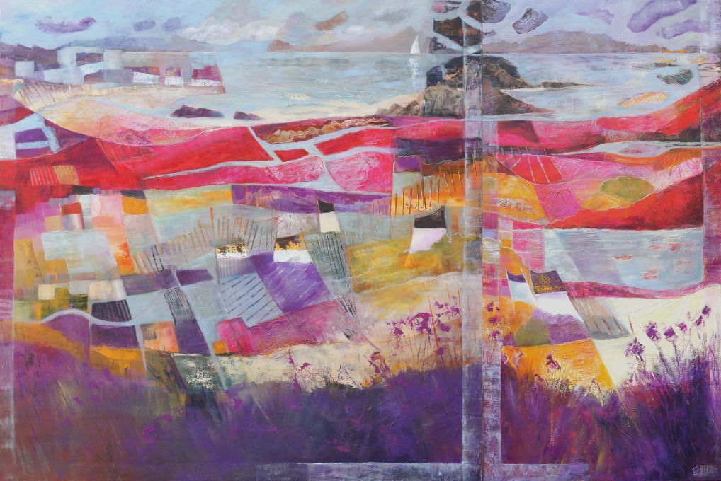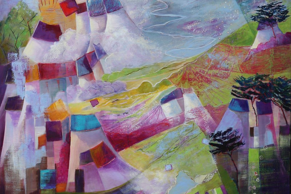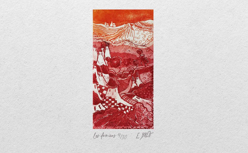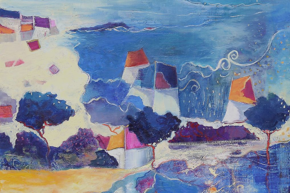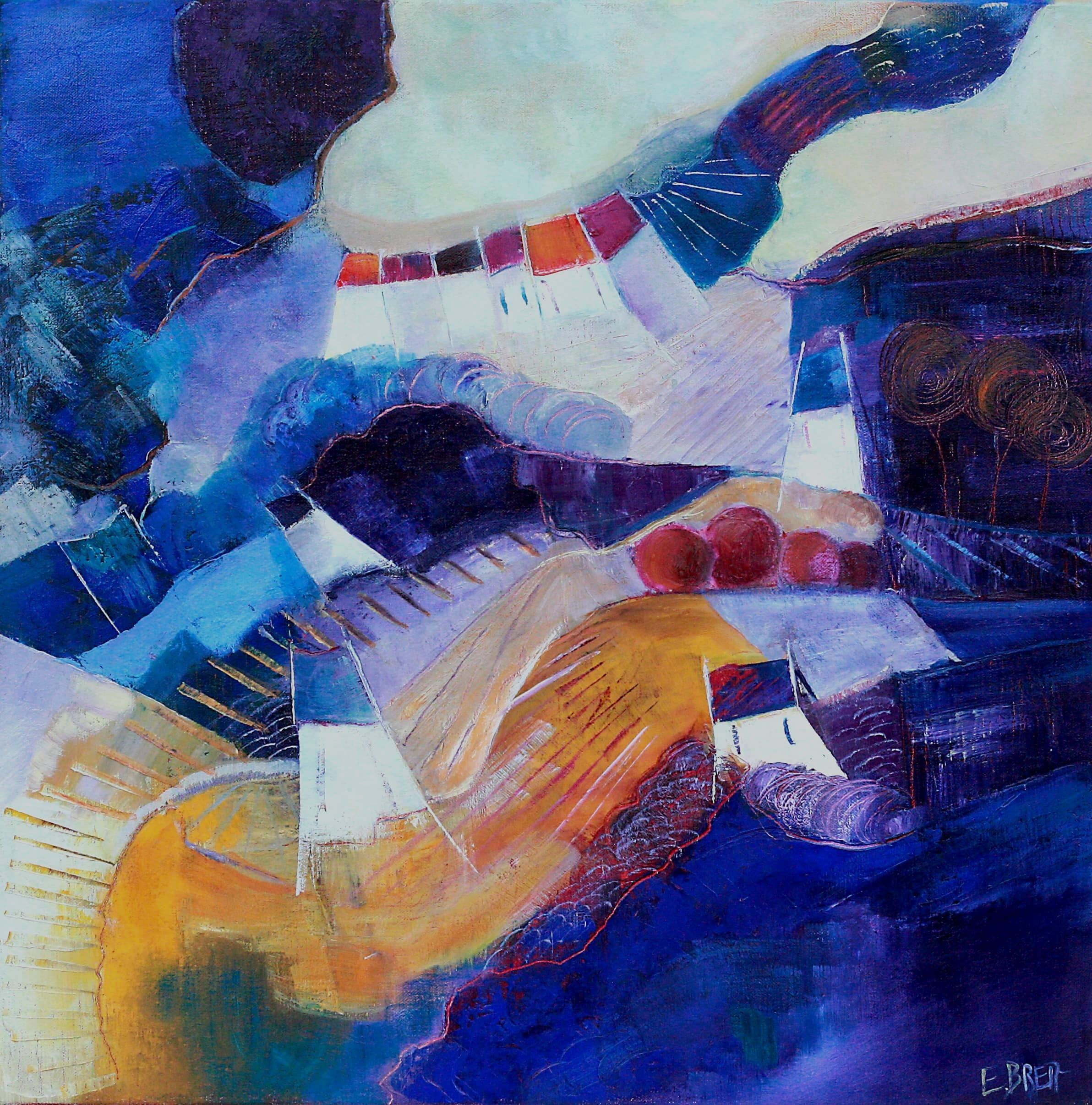 L'exposition d'Emmanuelle Brett est une invitation à entrer dans un monde imaginaire, un rêve éveillé, loin des réalités parfois moroses du monde qui nous entoure. Un cheminement dans des paysages aux harmonies colorées, où les villes se parent de formes tout en rondeurs et les champs de couleurs chatoyantes. Un monde onirique et féérique qui réinvente une réalité rêvée au gré de compositions joyeuses et rythmées. Ce sens de la composition est une des marques de la peinture d'Emmanuelle Brett. Comme dans une partition musicale, elle pense dominantes, rythmes, silences, vides et pleins, avant d'apposer ces lignes et courbures qui donnent mouvement et vie à ses paysages.La couleur composée, d'infinies nuances, vient enrichir le sujet, lui donner ses contrastes et parfaire l'harmonie du tableau.