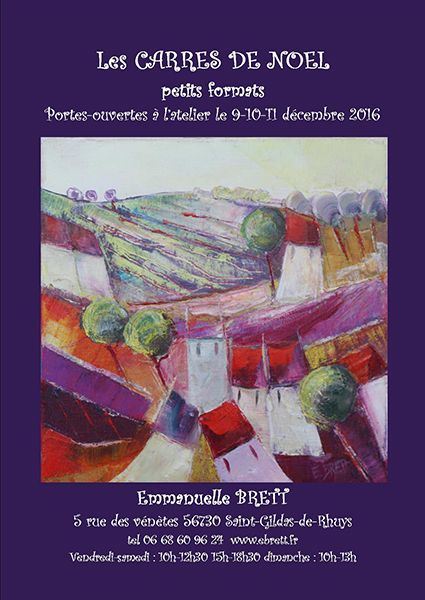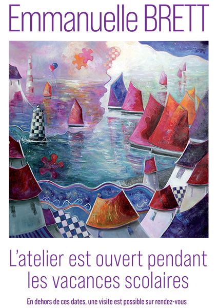 L'exposition d'Emmanuelle Brett est une invitation à entrer dans un monde imaginaire, un rêve éveillé, loin des réalités parfois moroses du monde qui nous entoure. Un cheminement dans des paysages aux harmonies colorées, où les villes se parent de formes tout en rondeurs et les champs de couleurs chatoyantes. Un monde onirique et féérique qui réinvente une réalité rêvée au gré de compositions joyeuses et rythmées. Ce sens de la composition est une des marques de la peinture d'Emmanuelle Brett. Comme dans une partition musicale, elle pense dominantes, rythmes, silences, vides et pleins, avant d'apposer ces lignes et courbures qui donnent mouvement et vie à ses paysages.La couleur composée, d'infinies nuances, vient enrichir le sujet, lui donner ses contrastes et parfaire l'harmonie du tableau.