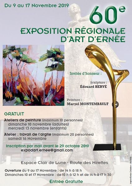 Parmi 100 artistes, de nombreux invités d'honneur des années précédentes seront présents pour le vernissage de la 60 ème édition de l'Expo d'art d'Ernée (53).