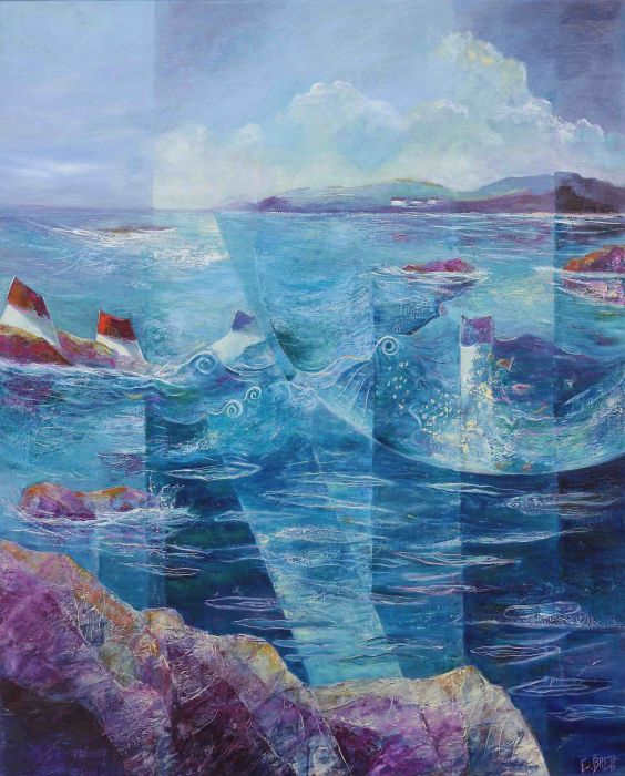L'exposition d'Emmanuelle Brett est une invitation à entrer dans un monde imaginaire, un rêve éveillé, loin des réalités parfois moroses du monde qui nous entoure. Un cheminement dans des paysages aux harmonies colorées, où les villes se parent de formes tout en rondeurs et les champs de couleurs chatoyantes. Un monde onirique et féérique qui réinvente une réalité rêvée au gré de compositions joyeuses et rythmées. Ce sens de la composition est une des marques de la peinture d'Emmanuelle Brett. Comme dans une partition musicale, elle pense dominantes, rythmes, silences, vides et pleins, avant d'apposer ces lignes et courbures qui donnent mouvement et vie à ses paysages.La couleur composée, d'infinies nuances, vient enrichir le sujet, lui donner ses contrastes et parfaire l'harmonie du tableau.
